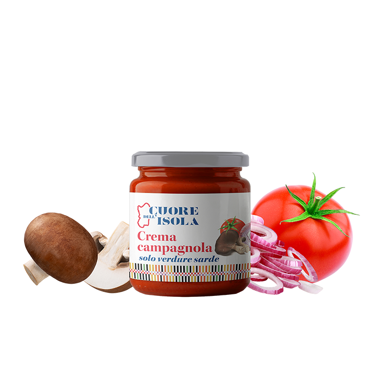 Gustosa crema spalmabile campagnola a base di sole verdure raccolte in Sardegna, perfetta da spalmare su fragrante pane appena tostato o da accompagnare a croccanti crostini per aperitivi dal cuore sardo.