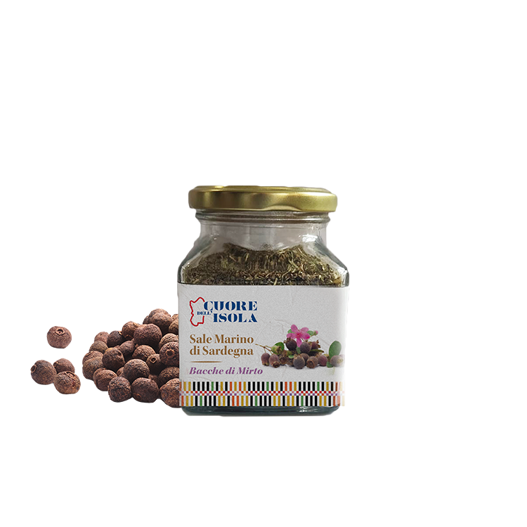 Home Tutti i prodotti Spezie e Condimenti Cuore dell’Isola Sale Marino Integrale con Bacche di Mirto 210 g